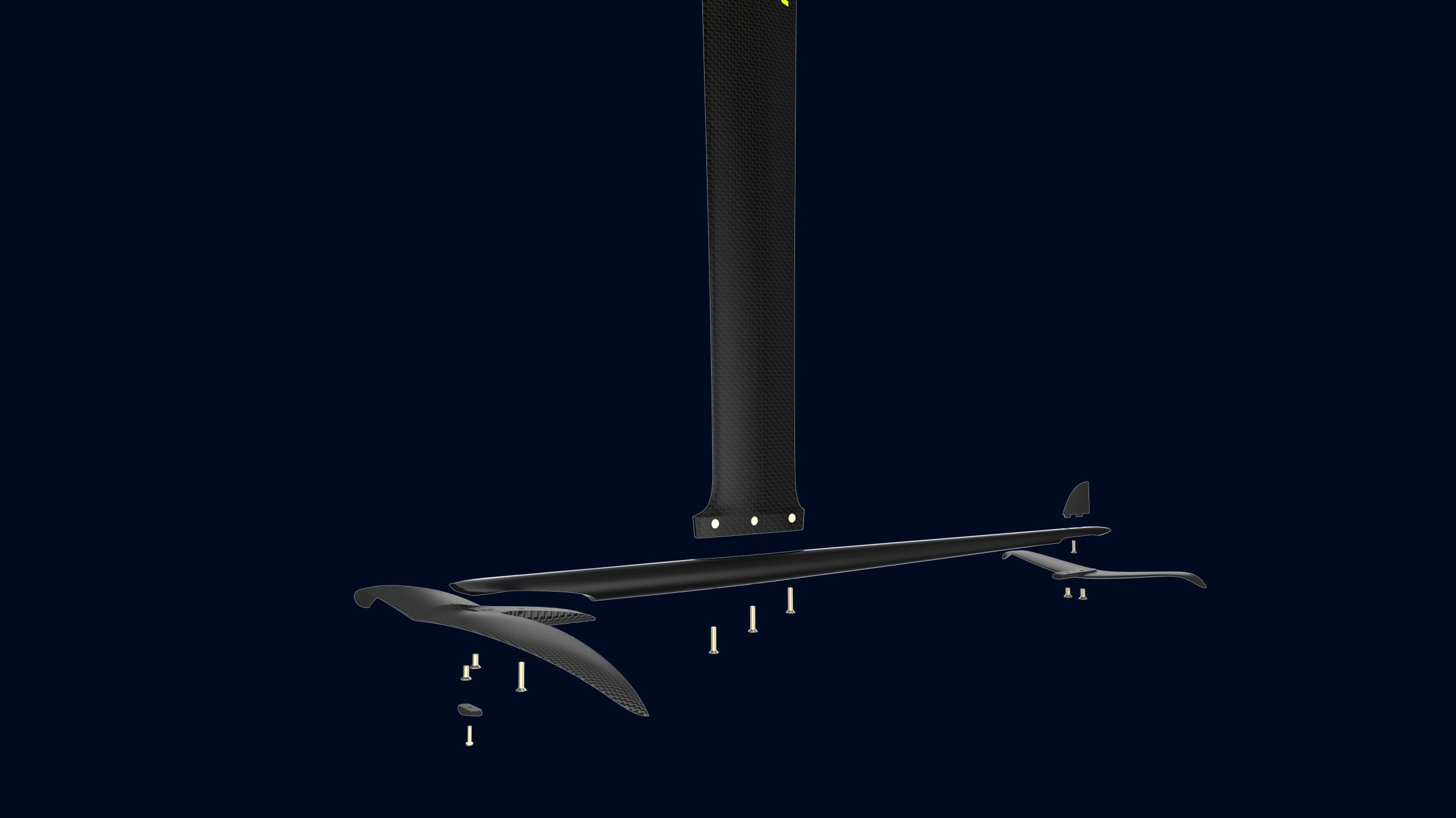 Introducing the most competitive Slalom & Speed Foil on the market, featuring ultra-streamlined connections. The unique front wing connection, secured by a four-bolt system, ensures unparalleled stability. Boasting the best water flow available, our design minimizes drag, delivering optimal performance. The tapered recess in the fuselage guarantees the tightest mast-fuselage connection, while the stiffest carbon mast provides superior rigidity.