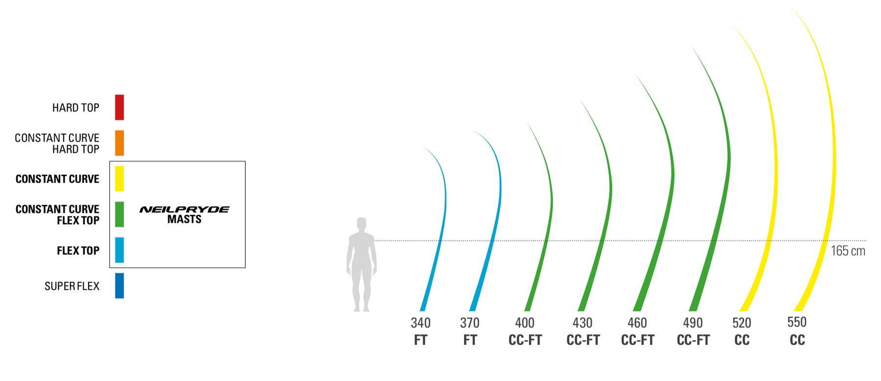 Our mast range remains mostly unchanged, with our signaturevariable bend-curve masts creating the perfect flex for every size of sail.