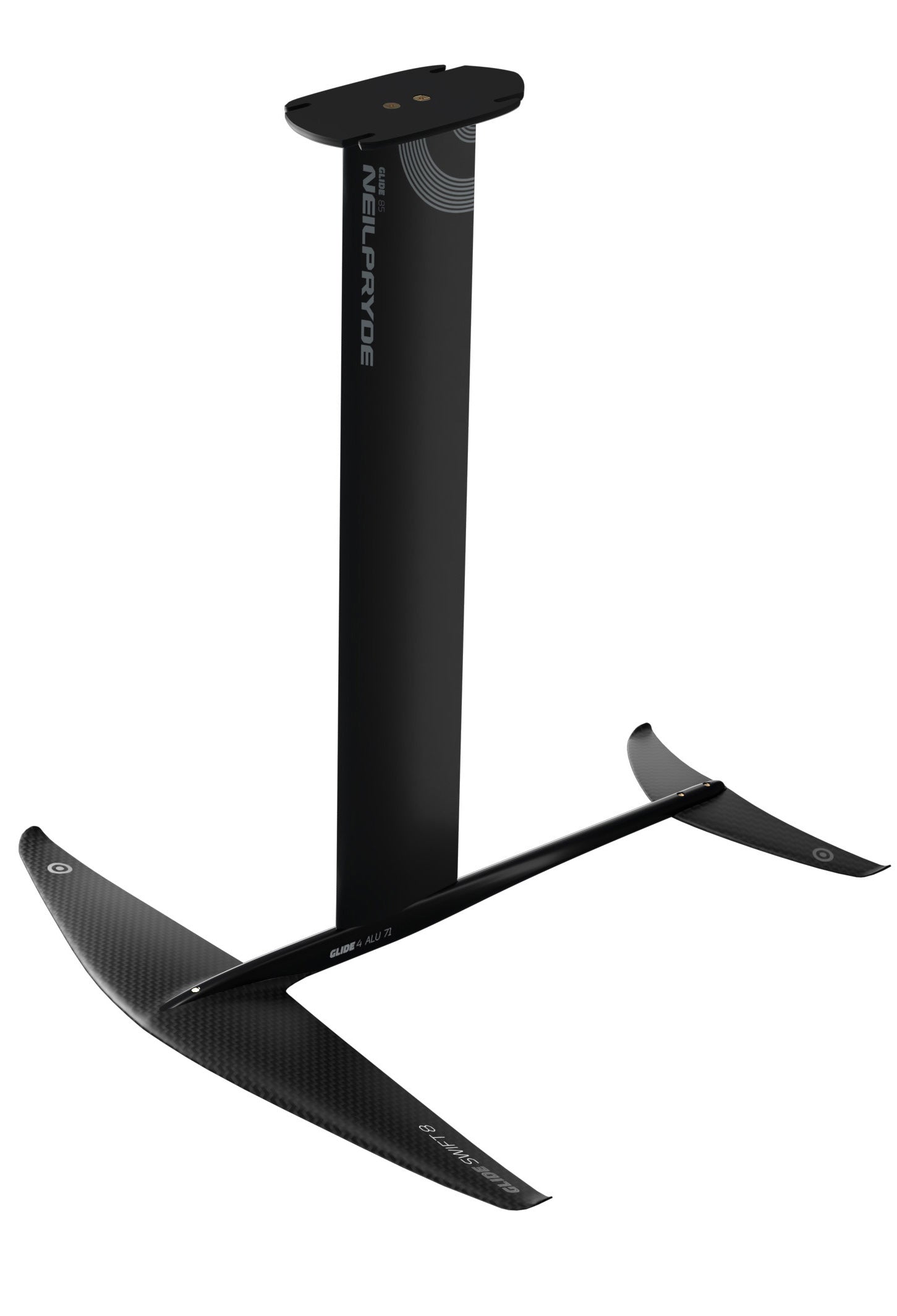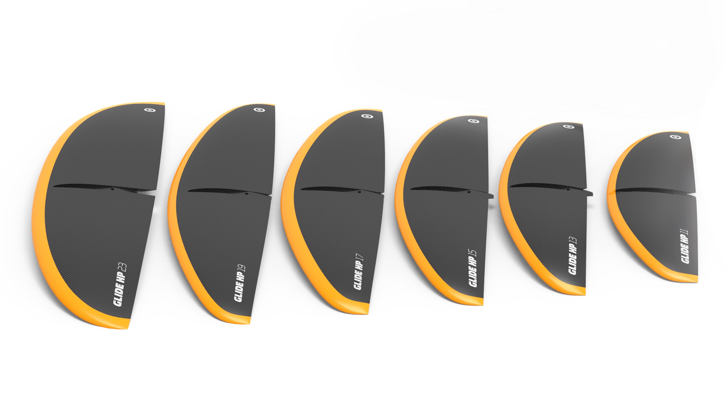 GLIDE HP is a fully modular system so you can expand your foil setup by simply adding new wings. Glide HP now offers a range of front wings from 1100cc all the way to 2300cc to cater for every level and size of foiler. Glide Wind comes with a longer fuselage and 85cm mast for windsurf foiling and Glide Surf comes with a shorter, more maneuverable fuselage and a shorter, 75cm mast to be able to access shallower breaks. Glide Suf Carbon comes with the shortest fuselage for maximum agility and is available in 75 or 85cm mast lengths.