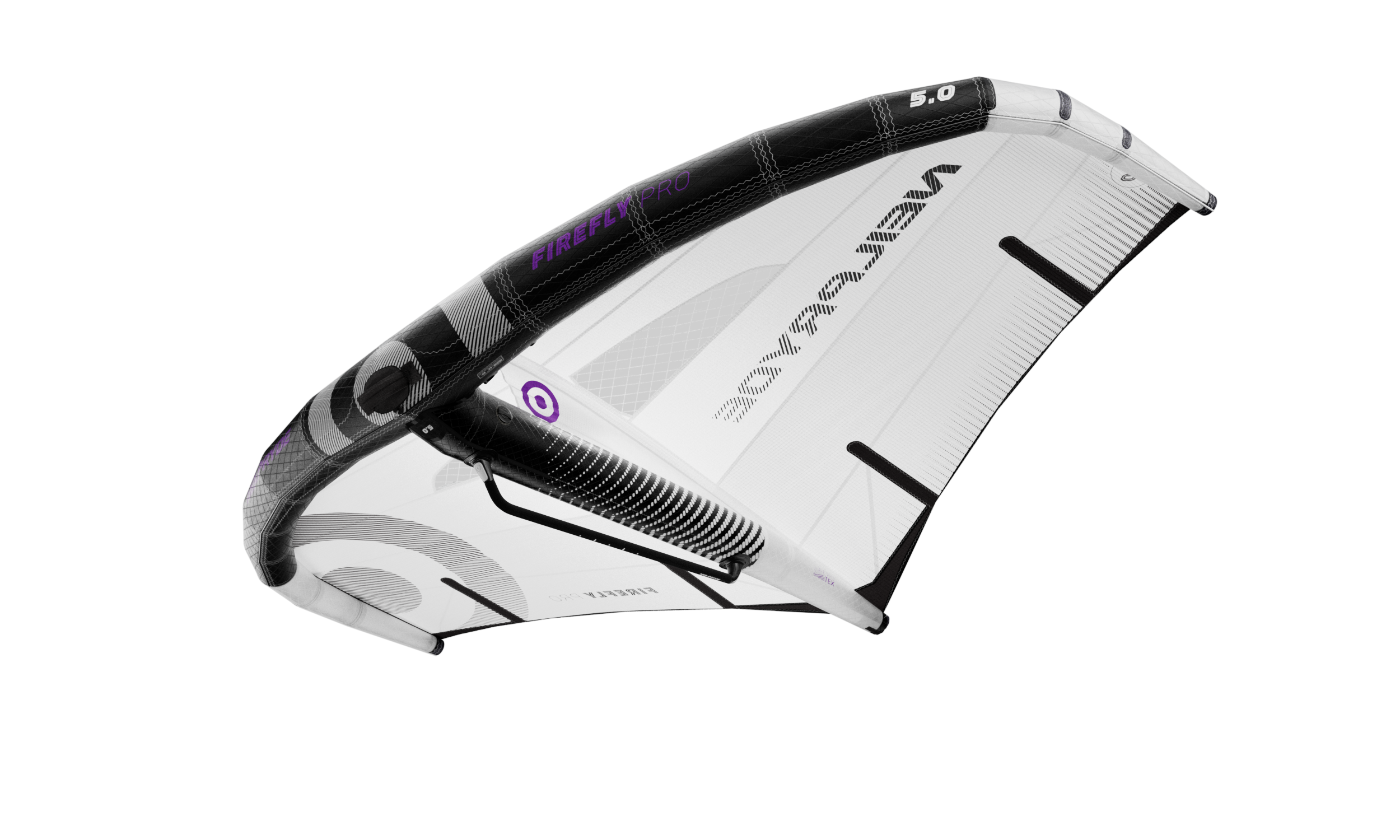 The central material of the FireFly PRO leading edge features our latest pro-level construction material, AeroTex. This high-tech composite is composed of woven UHMWPE (Ultra High Molecular Weight Polyethylene) with a black finish, enhanced with a protective film on one side and reinforced with Aramid X-Ply in the core. This combination offers exceptional strength, durability, and resistance to wear while maintaining a lightweight profile, perfect for demanding conditions and allowing us to reduce leading edge diameter while increasing stiffness.